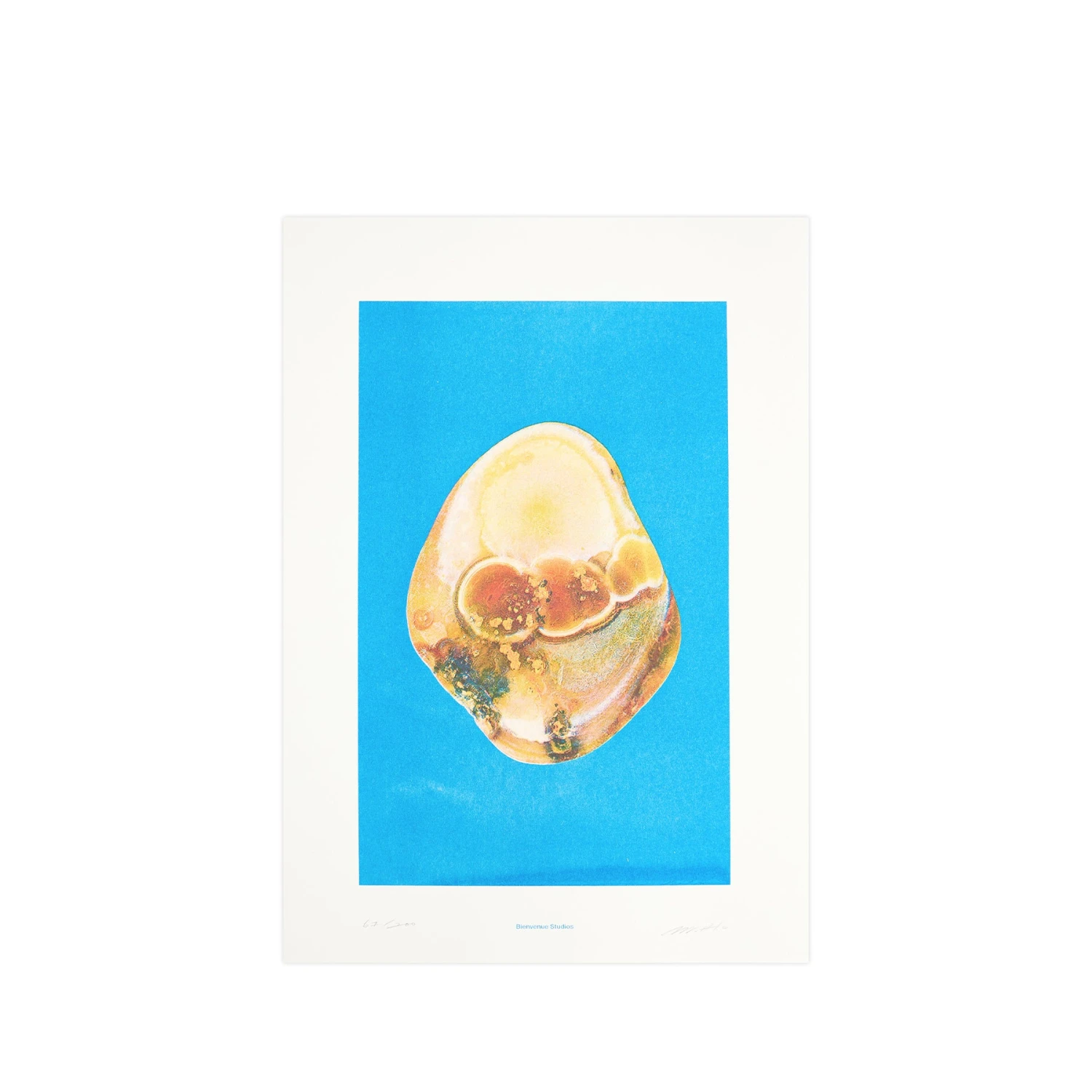 This print is inspired by the Chinese tradition of collecting river stones. Called Yuhua—meaning Rain Flower—these beautiful stones were historically found along the banks of the Yangzi river in Nanjing. A legend goes that a monk spent many days teaching in this remote area without food or water. Impressed with his dedication, the heavens showered him with flowers which turned to stones when they touched the ground.